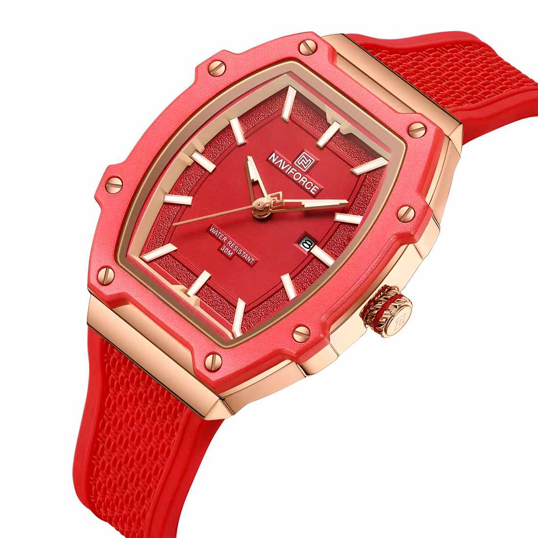 Descubre la elegancia y sofisticación de los relojes **Naviforce**, diseñados para quienes buscan estilo, calidad y funcionalidad en un solo accesorio. Con materiales de primera y un diseño innovador, este reloj no solo complementa tu look, sino que también resalta tu personalidad con un toque de lujo y distinción. Su correa elegante se adapta perfectamente a cualquier ocasión, permitiéndote lucir impecable en todo momento. Más que un simple reloj, **Naviforce** es sinónimo de prestigio y modernidad, ideal para quienes desean destacar con cada detalle. ¡Hazlo tuyo y eleva tu estilo al siguiente nivel!/// El reloj incluye su estuche original y tarjeta de garantía. ///Ficha TécnicaPantalla AnálogaResistencia al agua de 3ATM (solo exposición accidental al agua No ducha, No se puede sumergir, No usar en actividades acuáticas).Tipo de cierre: HebillaMaterial de la caja: Aleación de zinc metalGrosor de esfera: 1.2 cmAncho correa: 2.2 cmDiámetro: 3.6 cmMaterial de la correa banda: GomaLongitud de La correa: 25 cm ( Ajustable )Peso neto: 57 gTérminos de garantía: Para defectos de fábrica o solicitudes de retracto, es importante revisar el producto inmediatamente al recibirlo y antes de usarlo, ya que no aplicará garantía una vez utilizado. Se dispone de un máximo de 5 días para reportar defectos de fábrica, como piezas faltantes o rotas. En el caso de maquinaria, la garantía cubre tres meses para garantizar su correcto funcionamiento. Para efectuar una devolución, el producto debe ser devuelto en su empaque original, en buen estado, con todos los documentos y partes completas y sin daños.