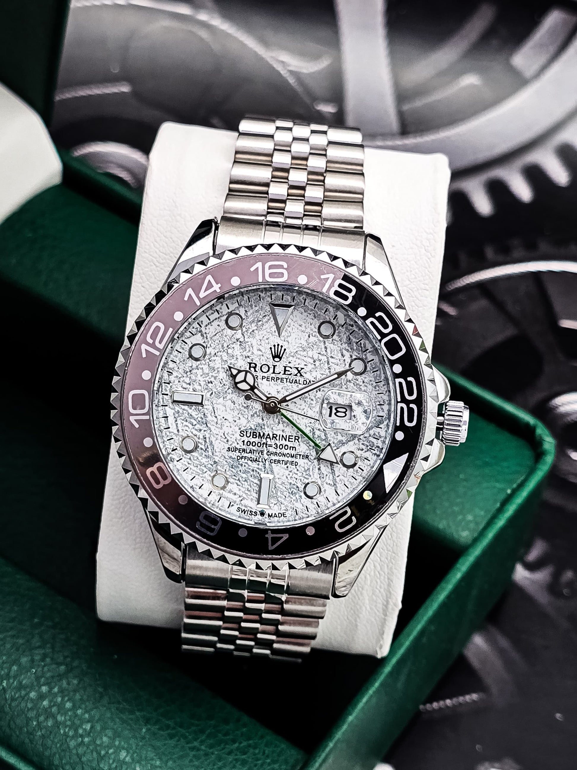- Función GMT: Además de las agujas convencionales de horas, minutos y segundos, cuenta con una aguja con punta de flecha que da una vuelta completa cada 24 horas, permitiendo la lectura de un segundo huso horario.